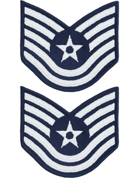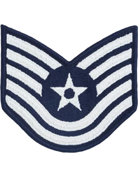 Air Force Technical Sergeant chevrons available in one sizes. The large size full color blue embroidered chevron is for the male uniform.