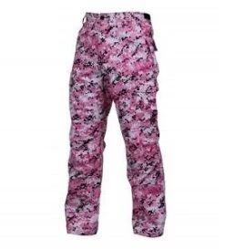 Pink Camo BDU Shorts – Button Fly, Six Pockets, Durable Cotton