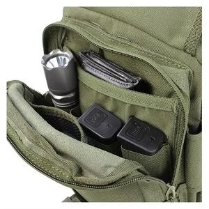 The Condor EDC or Everyday Carry Bag is a lightweight tactical bag with enough space to store all your essentials. The main compartment contains internal storage sleeves and the front compartment has an organization panel for document sorting. There is a zippered drop-in pocket along the front flap that allows for rapid access to valuables. For subtle storage, the pack features a front stash pocket and a concealment pocket with a loop panel for hook closure attachments. There is also MOLLE webbing along the sides, on the front and on the back for modular attachments. The adjustable shoulder strap and waist strap ensure a secure, comfortable fit when standing, walking, climbing or running and its nylon construction is tough and durable enough to handle constant travel.