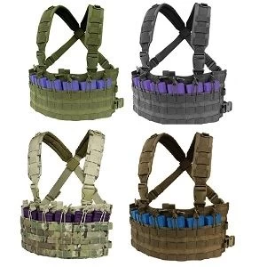 Condor’s lightweight MCR6 Rapid Assault Chest Rig evenly distributes weight across your back and shoulders when carrying a large amount of gear and can comfortably hold up to six mags. The rugged nylon construction is durable and reliable, featuring Swivi Lockster push release buckles and pivot points for maximum maneuverability and functionality. There is heavy-duty webbing along the rig for several modular attachments. Made for quick reloading, the bungee release system and open-top pouches are designed to promote rapid mobility. Padded back straps help distribute weight for a comfortable fit and have a hook and loop closure system and D-ring attachment points as well. For extra storage, the rig features a map pocket and hidden interior mesh pocket.