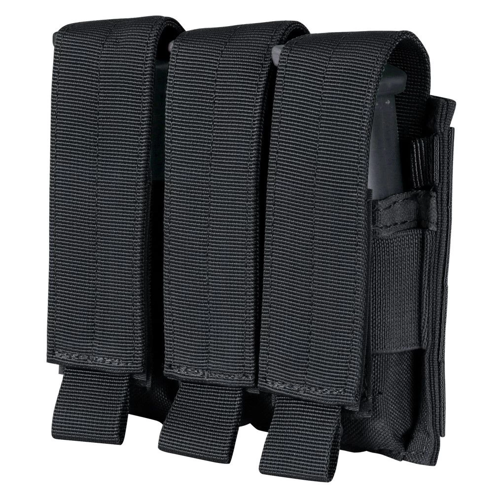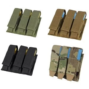 The Triple Pistol Mag Pouch is ideal for holding spare pistol magazines in a pinch. Compatible with most pistol magazines, the pouch is equipped with an adjustable flap and hook and loop strapping to hold magazines safely and securely without taking up much space on your belt. The pouch attaches easily to MOLLE webbing and can double as storage space for small utilities or tools when you don’t need extra ammunition. Made with durable stitching and at just four inches in height, this pouch will stand the test of time but won’t stand out on your combat kit or duty belt.