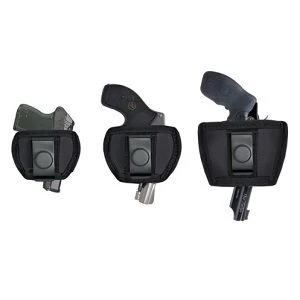 The Fit-All Ambidextrous Concealment Holsters are made of a Faux Black Leather Holster with Soft Inside Lining. The Fit-All Ambidextrous Concealment Holsters have a Thumb Break to Secure Weapon, a Universal Fit for Left or Right Hand, and a 2′ Belt Loop for Outside Carry and Doubles as Clip Holder. Reverse the Gun in the Holster for On Body Inside Concealed Carry.