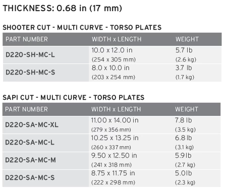 **Please note armor purchases are nonrefundable and cannot be shipped outside the US without proper export licenses. D220’s are a special order item and only sold in sets. Lead times are 30-60 days. Please note the font logo may or may not be on the plate.**