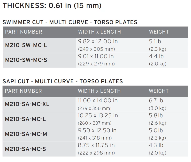 The Hesco M210 plate is a new offering from Hesco. A very thin and light offering at .61″ and 5.1 lbs. in multicurve, for a comfortable fit. This plate is rated to stop the new M855A1 enhanced performance AP round at maximum velocity, as well as 7.62×39 API at max velocity. These plates offer the end user a lightweight comfortable solution that can be concealed if needed. These plates are agreat addition to the Hesco lineup and as an upgrade to your plate carrier. great addition to the Hesco lineup and as an upgrade to your plate carrier.
