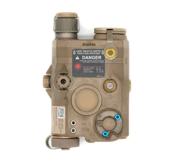 The L3Harris ATPIAL High Power (LA-5B) is a high power variant of the standard PEQ-15 laser aiming device. The ATPIAL High Power, otherwise known as the LA-5B, is a weapon mounted IR / visible laser aiming device used with night vision devices. The L3Harris LA-5B features an IR illuminator along with a slaved visible and IR laser. The slaved IR & visible lasers gives the user the ability to simply zero the visible laser and the IR laser will hold the same zero as the visible laser. This allows the zero process to be easier and more precise than zeroing the laser under night vision goggles.
