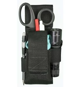 The large emt pouch is constructed of heavy duty polypro webbing. The emt pouch can be taken off the belt without removing the belt first. The emt pouch has extra pockets for more scissors, tools or instruments. The emt pouch is 3′ wide. The emt pouch has 3 large pockets, a pen holder, knife holder, and a tactical light holder. The emt pouch is easy to wash and drain because it is unaffected by water, oil and mildew.