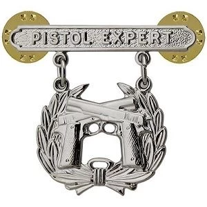 United States Marine Corps (USMC) qualification badge pistol expert. For a score of 345 or higher.