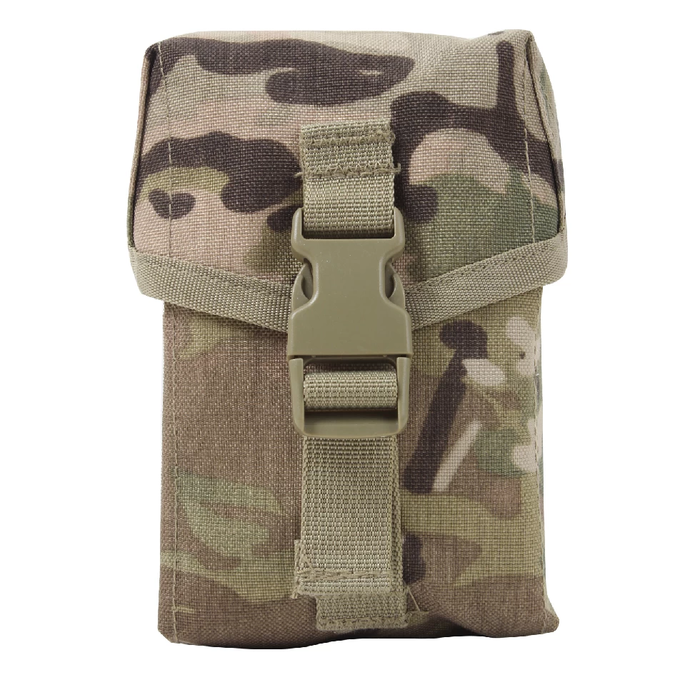 Here at army surplus world we carry a multicam molle saw pouch. The multicam molle saw pouch is made of 1000 denier cordura nylon and 100 round compatible. The multicam molle saw pouch has a plastic quick release closure. The saw pouch is M.O.L.L.E Compatible.