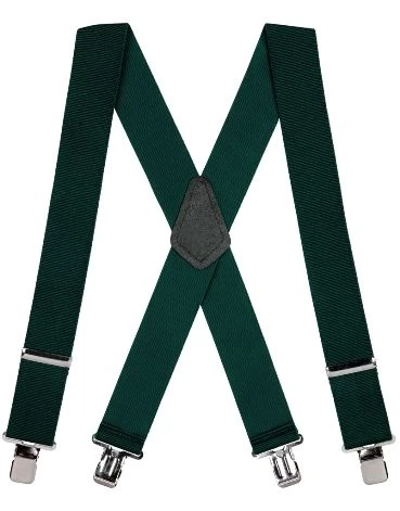 • Fully elasticized suspenders with a black, genuine leather crosspatch and nickel construction clip