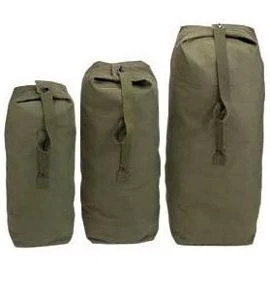 Army Surplus World has 3 different size top loading olive green canvas duffle bags. This is a heavy duty cotton canvas bag. The duffel bag can be used as a travel duffel bag, a sport duffel bag, and Children’s Duffle Bags. We have an embroidery machine and we can even sell you monogrammed bags. The canvas duffel bags are the top loading style. They come with a cotton web shoulder strap and a reinforced web side handle. There is a snap hook closure. Excellent Seller. Please note that the dimensions are approx. and are measured with the bag laid flat.