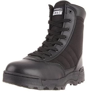 For public safety professionals and anyone who works in dangerous environments, the Original SWAT Classic boot provides phenomenal safety and comfort features. The rubber outsole provides excellent traction and slip resistance, while the Aegis antimicrobial insole protects from bacteria and hazardous materials. These boots also meet standards for electrical hazard protection, making them secure enough for potentially dangerous jobs. They include thermoplastic heel and toe counters for comfort and lightweight security, and an EVA midsole molded for additional arch support. A removable orthotic footbed makes these boots customizable without sacrificing the built-in antimicrobial protection. They can be put on and taken off quickly and easily thanks to a YKK side zipper with a hook and loop closure tab for convenience.