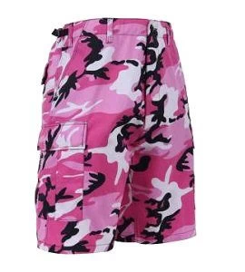 The pink camo shorts feature a button fly that allows for quick repair in the field, 6 pockets ideal for carrying equipment and accessories, and adjustable waist tabs that are ideal for keeping the shorts secure.