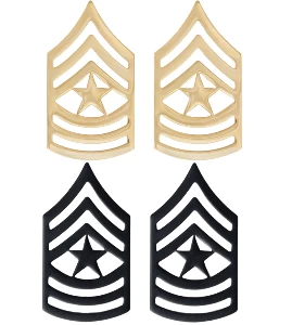 The army sergeant major rank insignia is available in both polished gold or black metal. The polished gold army sergeant major rank insignia is ‘no shine’ or as many have heard before stay bright. No shining needed to keep the polished gold rank looking great. The sergeant major black metal us army rank insignia is official issue as well. Rank is sold in a set of two.