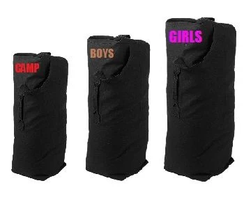 Army Surplus World has 3 different size top loading canvas duffel bags in stock and ready to ship. We sell tons of duffel bags for lots of different uses. They make good travel bags, sports bags, kids camp bags and more. We have an on-site embroidery machine to monogram or personalize any bag. The bags are the top loading style. They come with a cotton web shoulder strap and a reinforced web side handle. There is a snap hook closure. The canvas duffel bags are made of heavyweight canvas. Please note that the dimensions are approx. and are measured with the bag laid flat.