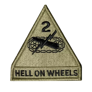 The 2nd Armored Division is nicknamed “Hell on Wheels”. The tank tread, lighting flash and cannon in the center of the patch are symbolic of mobility , power and speed. The division’s designations is the numeral in the top center. This patch measures 4″ by 4″ with hook and loop fasteners. Worn on the OCP (Scorpion) and/or Multicam Army Combat Uniform (ACU). Sold individually.
