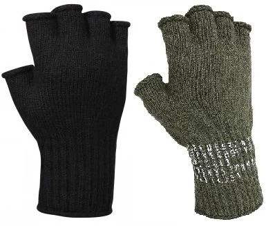 These fingerless wool gloves are great for people that have to work out in the cold but need their fingers free. One Size Fits Most. Available in OD Green or Black.