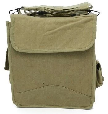 The Vintage Khaki M-51 Engineers field Bag is the ULTIMATE carry-all for business or travel, large laptop size main compartment, large back document compartment wih 3/4′ zipper opening, dozens of pouches, compartments and pen holders, large size plastic covered document sleeve, storm flap, cell phone pouch, adjustable shoulder strap, top carry handle, nickel plated hardware, heavyweight 22 oz. cotton canvas, 12′ x 14′ x 5 3/4′. Army Surplus World has your M-51 Engineers field Bag in stock and ready to ship. It is a great carry-all shoulder bag. Color: Khaki