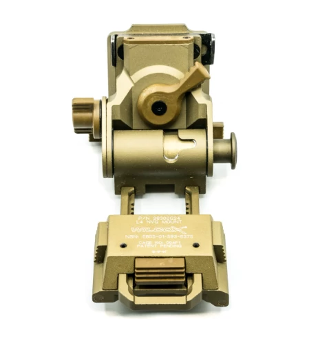 The Wilcox L4 G24 breakaway mount provides rock solid attachment for night vision goggles or j-arms with a dovetail interface. The Wilcox G24 mounts to any helmet using an Ops-Core VAS or standard Army shroud. The G24 mounting system allows the mount to break away from the shroud when stressed or sharp force is applied. This protect the user from possible neck injury if their night vision becomes trapped during activities such as repelling, hard impacts, or maritime applications. This breakaway feature is user configurable to be set to break away or stay attached depending on the users needs.